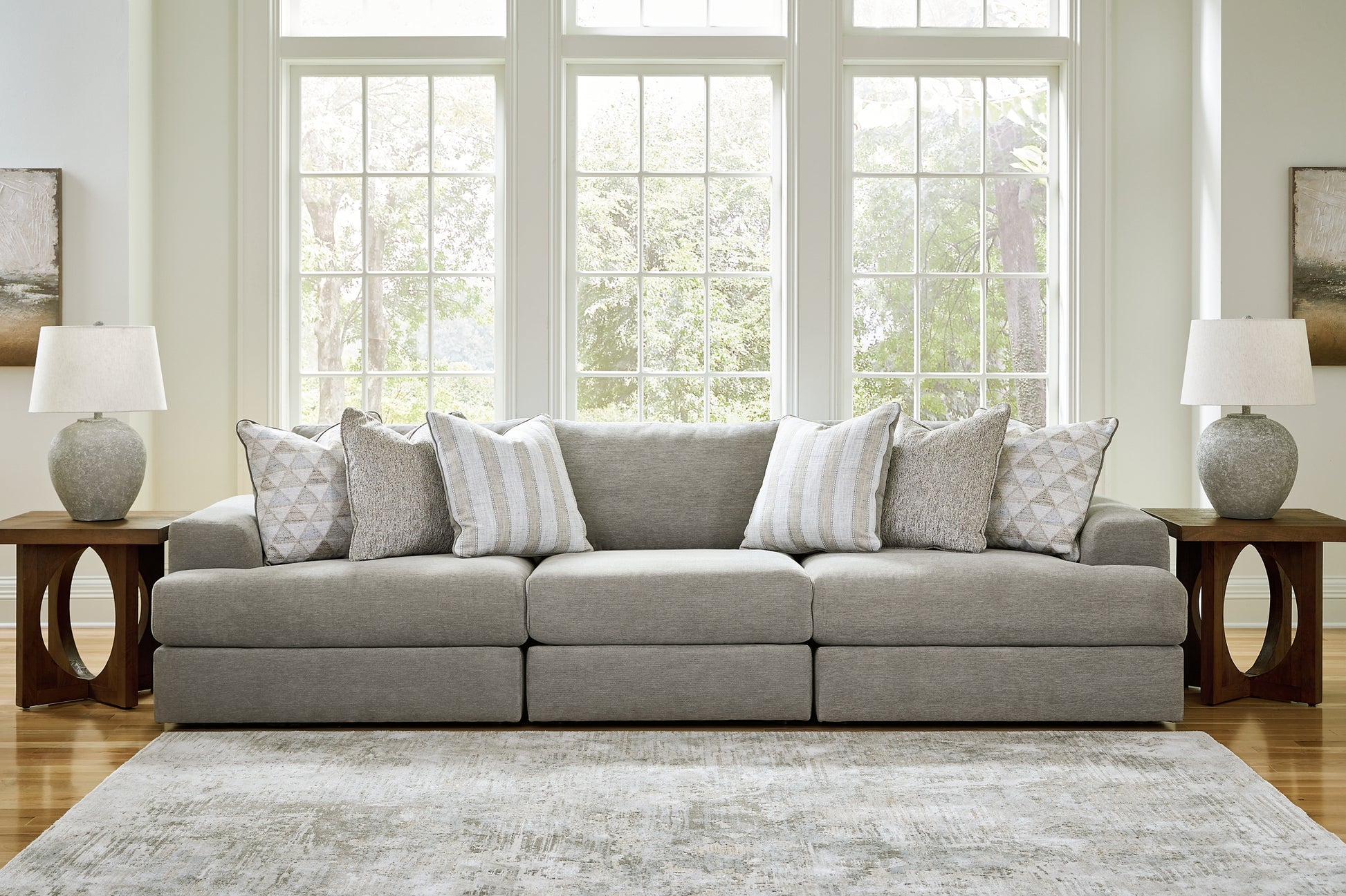 El diseño informal y de líneas bajas de este sofá seccional lo convierte en el lugar perfecto para relajarse. Sus asientos profundos invitan a disfrutar de la máxima comodidad, con robustos brazos biselados que se suavizan con cojines de borde redondeado en forma de cascada. Lo mejor de todo es que su diseño modular permite colocar las piezas por separado o reorganizarlas para lograr un estilo siempre renovado. Ya sea que disfrutes de la compañía de amigos o te relajes a solas, la excepcional calidad y el elegante estilo de este sofá seccional te encantarán.
