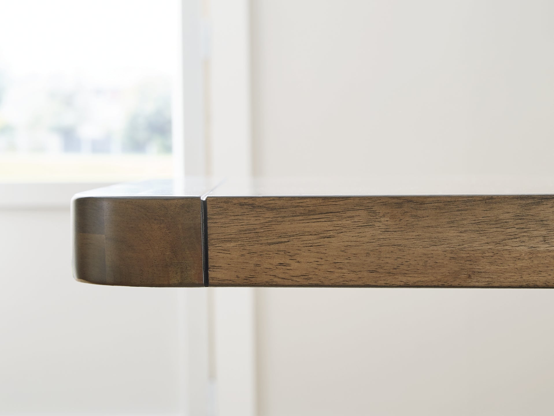 | Detalles | Fabricada con madera maciza, chapa de nogal americano y tablero de fibra de densidad media (MDF). Acabado vidriado marrón claro que realza la veta natural de la madera. Extensión central extraíble. La mesa se extiende tirando de ambos extremos y deslizando la extensión. El tablero se desliza suavemente gracias a un sistema de guías metálicas con rodamientos de bolas. Requiere montaje. | |