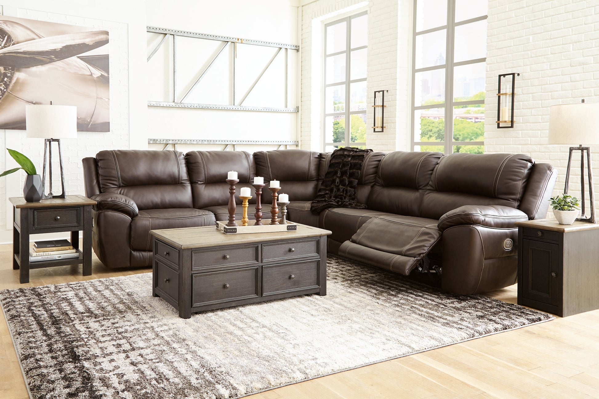 Disfruta de la máxima comodidad con un estilo moderno, elegante y minimalista gracias a este sofá seccional reclinable eléctrico en color marrón chocolate. Su tapizado de piel sintética y cuero sintético, combinados a la perfección, presenta un acabado granulado que le aporta un toque auténtico, realzado con costuras gruesas que crean un contraste impactante. Cuenta con control eléctrico de un solo toque con posiciones ajustables, además de un reposacabezas ajustable Easy View™ que te permite ver la televisión perfectamente incluso cuando estás reclinado. Los reposapiés extendidos ofrecen mayor espacio para las piernas. Y para cargar tus dispositivos mientras te relajas, solo tienes que conectar un puerto USB de bajo consumo.
