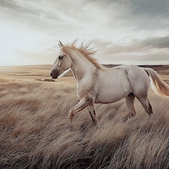 Este cuadro aporta una serena belleza a tu hogar. Esta cautivadora impresión sobre vidrio captura la gracia y la majestuosidad de un caballo salvaje galopando por un campo dorado. Los tonos cálidos y terrosos, junto con su composición dinámica, crean una sensación de libertad y movimiento. Es la opción perfecta para realzar la decoración de tus paredes con arte inspirado en la naturaleza.