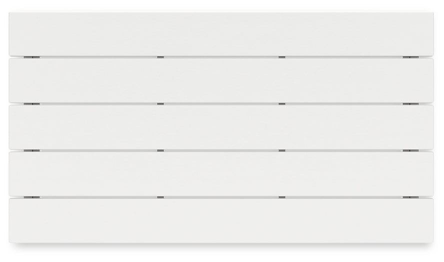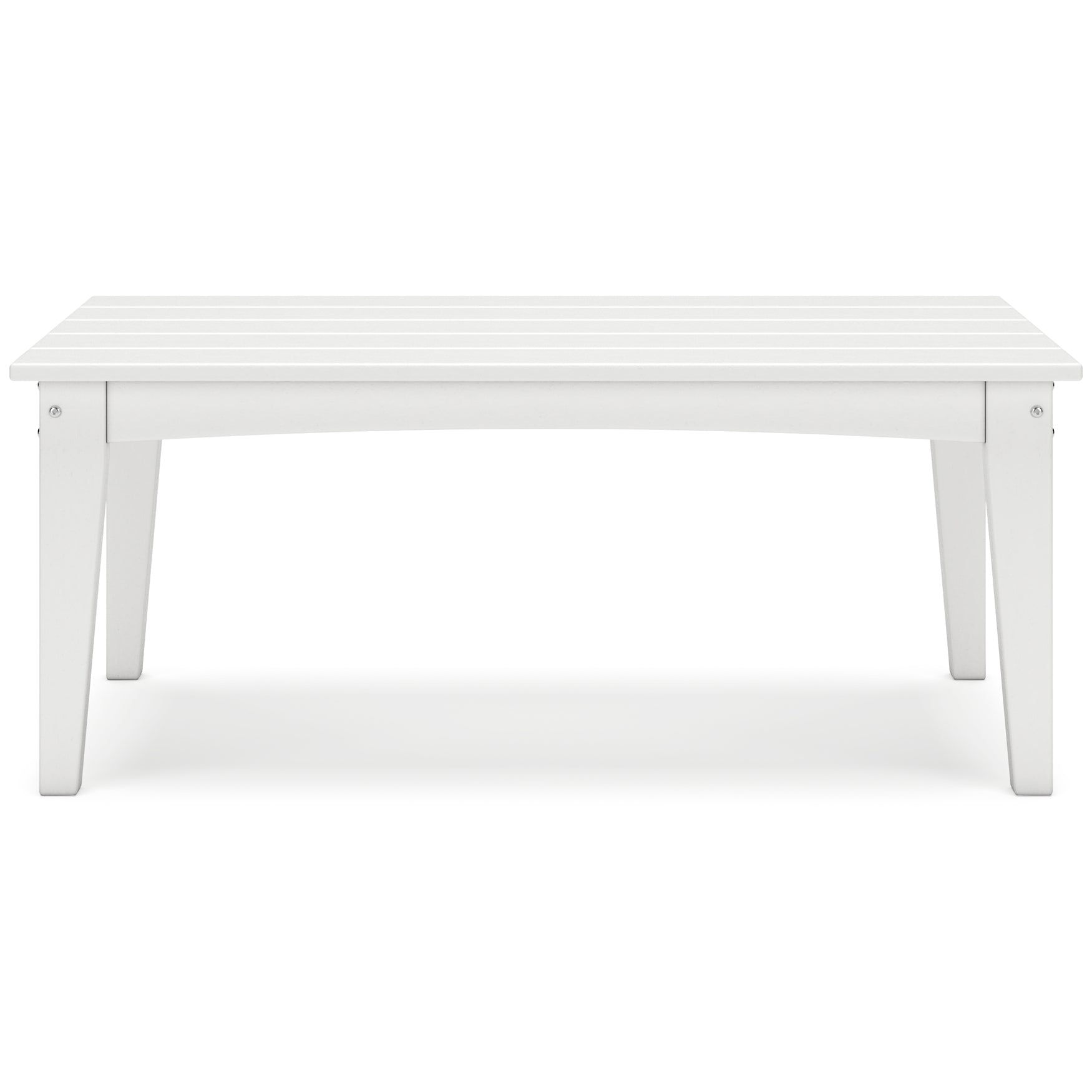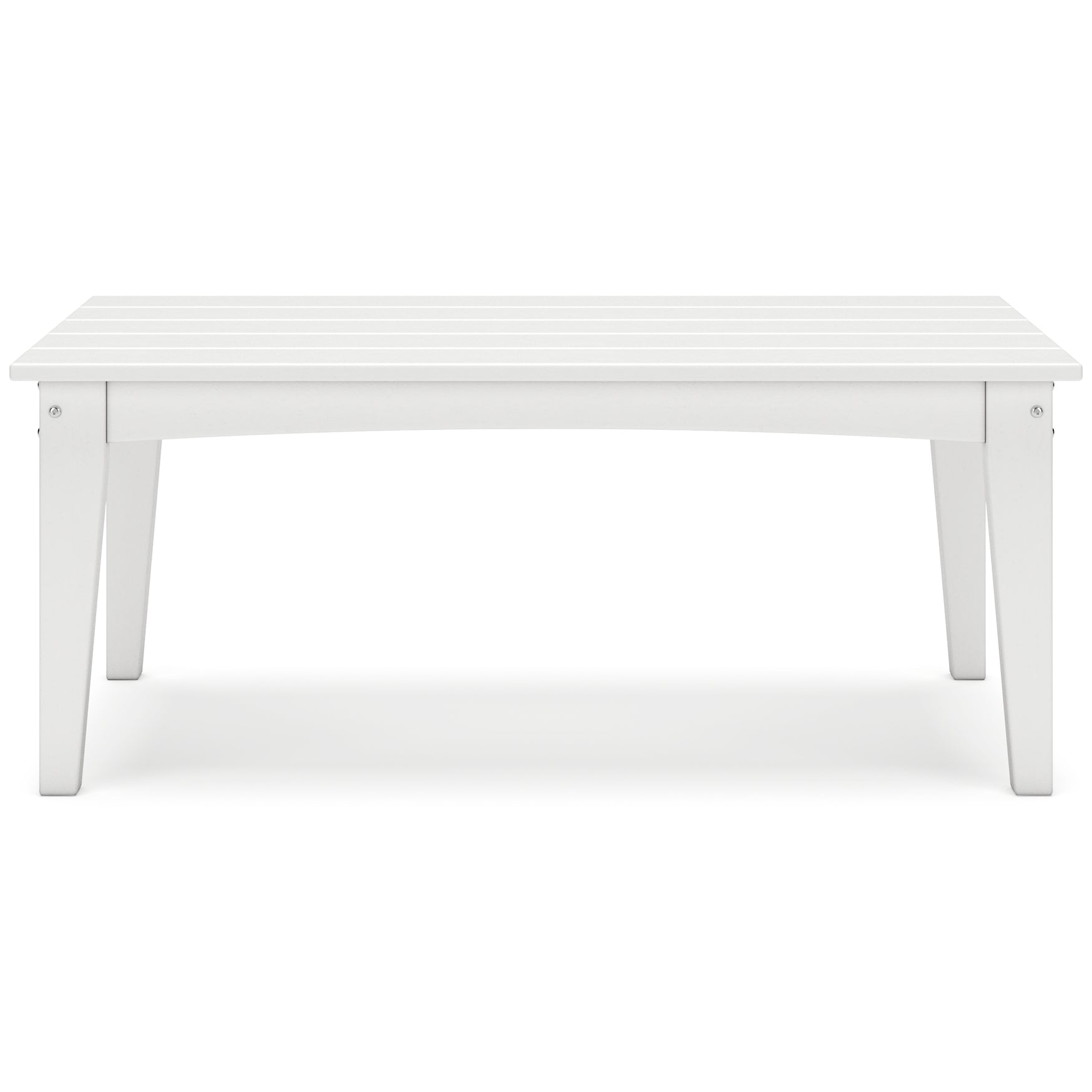 Sumérgete en la relajación al aire libre con esta mesa de centro. Su acabado blanco brillante le da un toque fresco y, gracias a su resistente material MEGA-TUFF® HDPE, resiste los días soleados de verano y las cálidas noches de invierno. Su diseño de listones, que repele la lluvia, se adapta a la perfección a cualquier clima. Úsala para colocar decoración de exterior, bebidas o aperitivos.