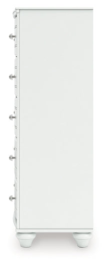 Ideal para una princesa. Esta cómoda, con su elegante acabado blanco mate, se complementa con detalles encantadores como patas torneadas, tiradores de cristal y una delicada ornamentación: el toque final perfecto para tu pequeña. Con sus cinco cajones, tu niña se sentirá como una reina.