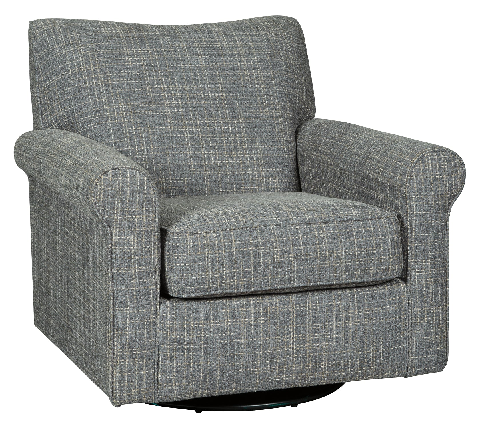 Con un atractivo tejido de tweed en un relajante tono azul, esta mecedora giratoria le da un toque moderno al clásico sillón de brazos enrollados. Su suave giro de 360 grados garantiza tu comodidad y un agradable espectáculo visual. Su suave balanceo está diseñado para que te relajes por completo.