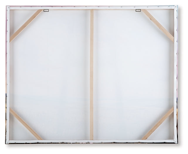 De una belleza sobrecogedora. Esta obra de arte mural, que representa un paisaje luminoso, captura un cielo espectacular en relajantes tonos rosas, azules y amarillos, mientras la luz del sol se filtra entre un campo de flores. Los detalles pintados a mano convierten este lienzo en un magnífico complemento para una oficina, un dormitorio o una mesa de entrada.