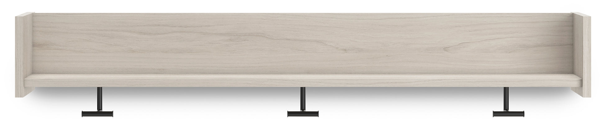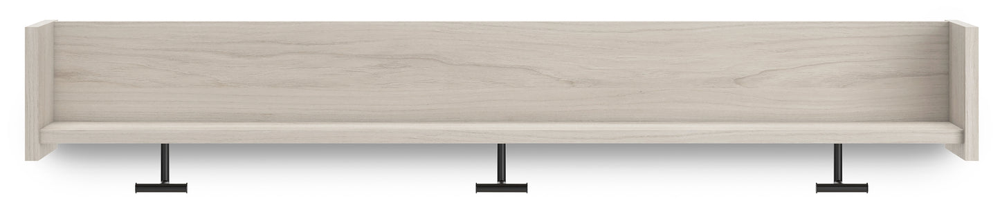 The sleek, minimalist look of this wall-mounted coat rack is fashionably contemporary and easy to integrate in a variety of living spaces. Three sturdy hooks and a spacious shelf are your new go-to spot for hats and scarves or displays. Whether by the front door or back entry, this coat rack keeps all-weather essentials well within reach.