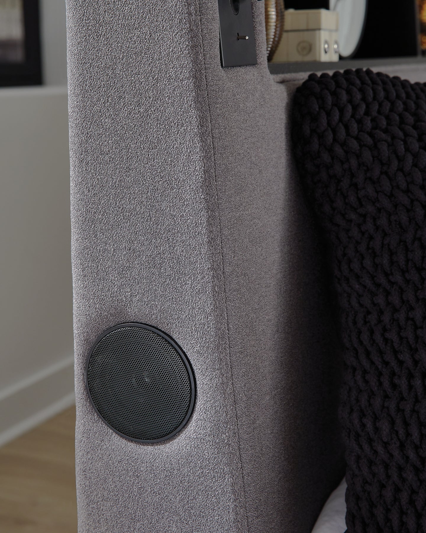 Snooze in style with this king upholstered bed. It brings delightful function to winding down before bedtime, with an adjustable LED reading light on each side. And for added flair, multicolored ambient lighting brings an ultra-cool vibe to the overall look. Combining modern convenience with captivating design, this bed revamps your restful retreat like never before.
